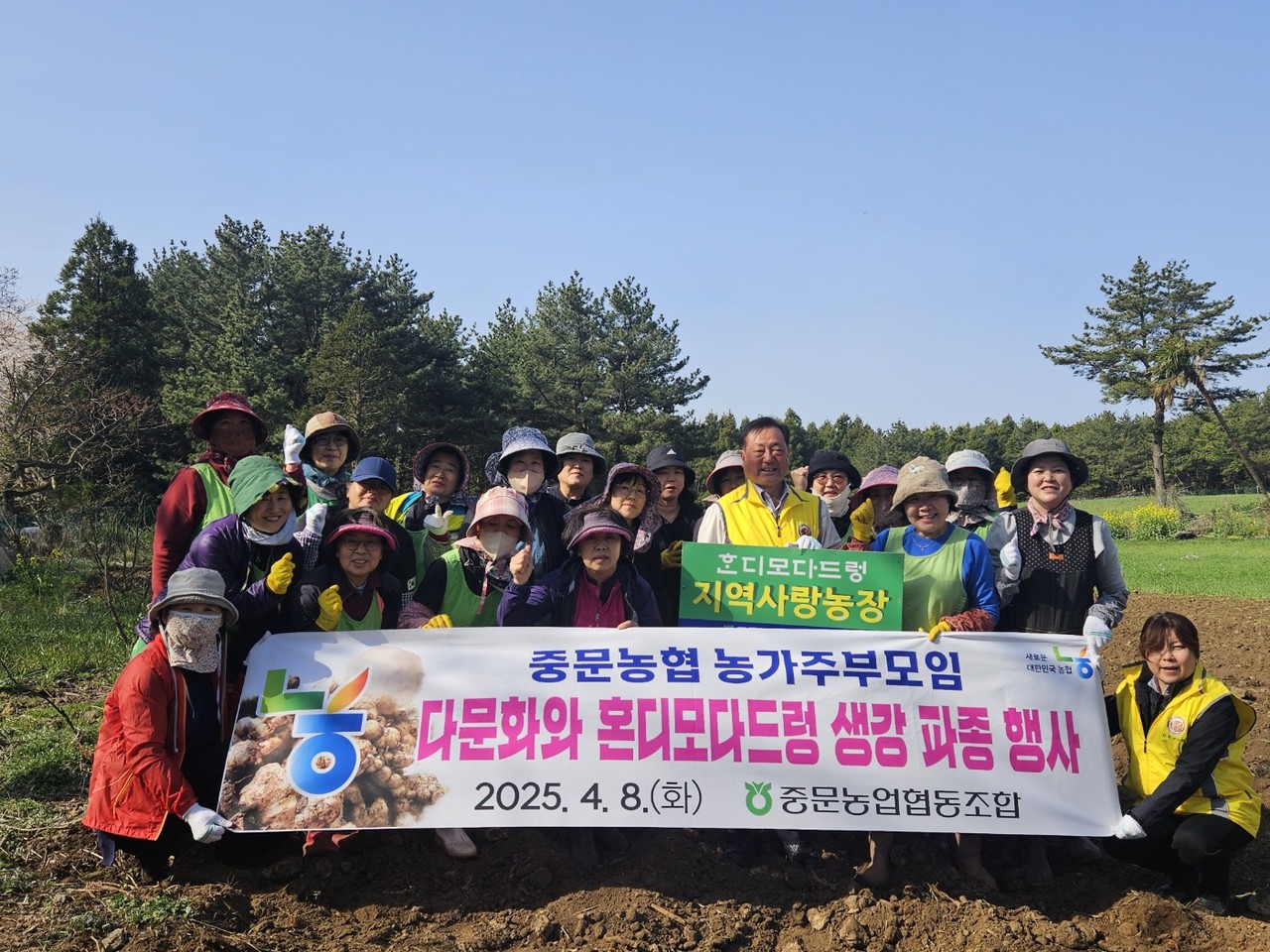 중문농협 농가주부모임은 지난 2013년부터 매해 봄에 생강을 파종하고, 가을에 수확 판매하는 ‘혼디모다들엉(‘함께 모여’라는 뜻의 제주어)’ 공동소득사업을 운영 중이다.