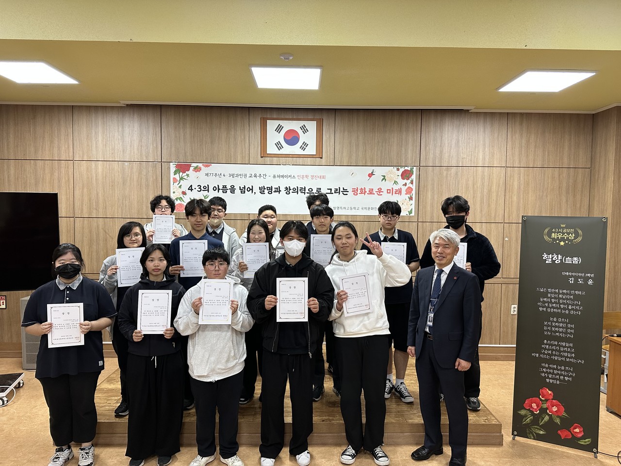 서귀포산업과학고등학교(교장 문경삼)는 지난 25일 학교에서 4·3평화·인권교육주간을 맞아 실시한 ‘퓨처메이커스 인문학경진대회’에서 성과를 거둔 학생을 대상으로 시상식을 진행했다.