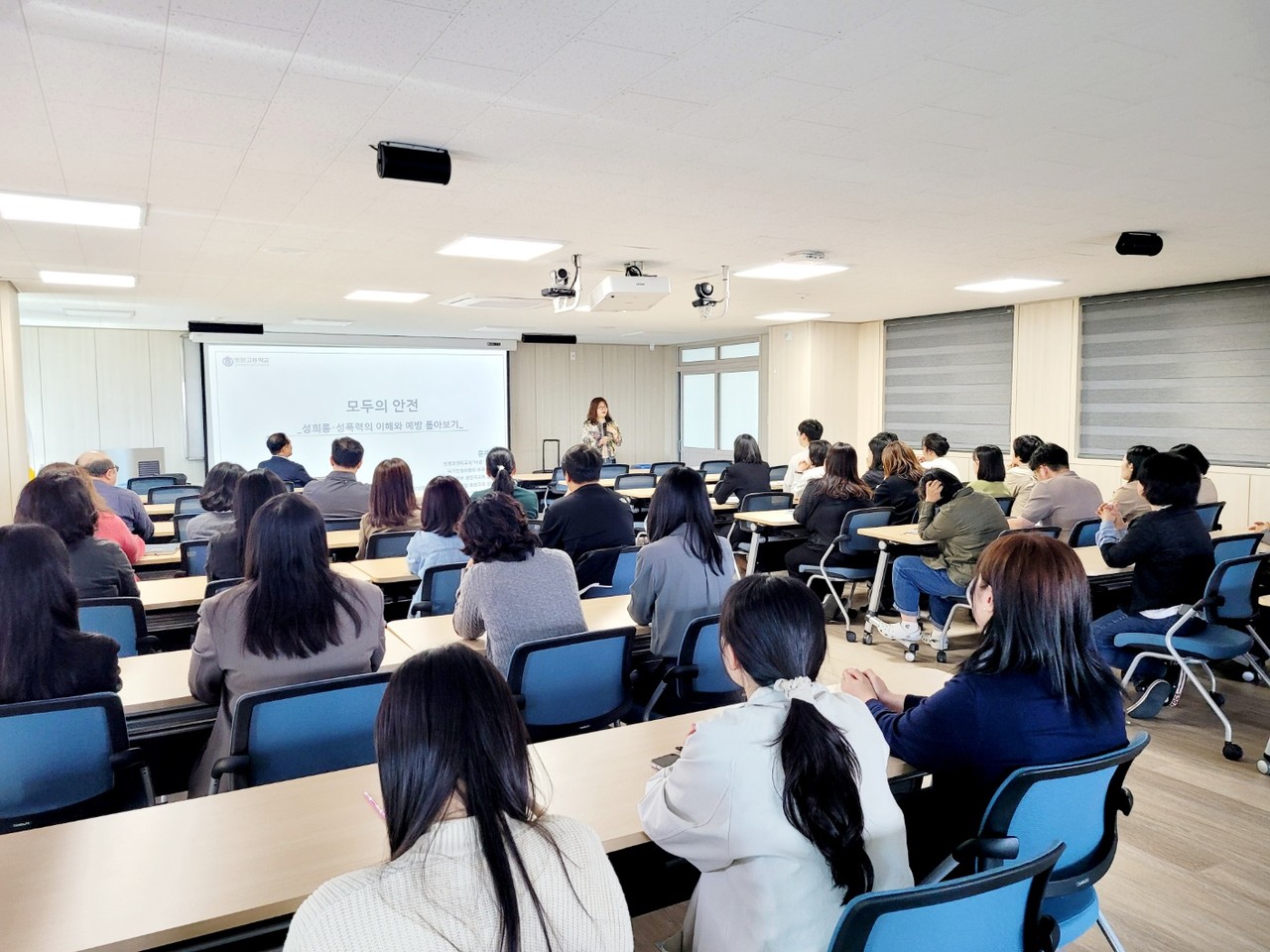 이번 연수는 인권과젠더교육 다음 센터 문수연 대표의 성폭력에 대한 이해, 디지털성폭력 이해, 성희롱 이해, 사건처리절차 톺아보기, 모두의 안전을 위한 주변인의 역할 등의 주제로 진행됐다.