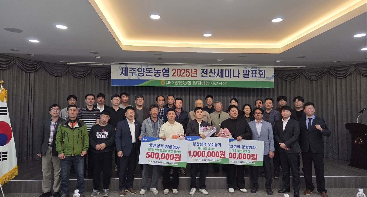 이날 세미나에서는 2024년 제주양돈농가 전산성적과 우수사례(가시농장 오상화 대표) 발표, 2세 양돈인 대우축산 송도욱 조합원의 가업 승계 사례, 한별팜텍 박성원 본부장의 전산 분석 중요성과 컨설팅 사례 발표가 진행됐다.