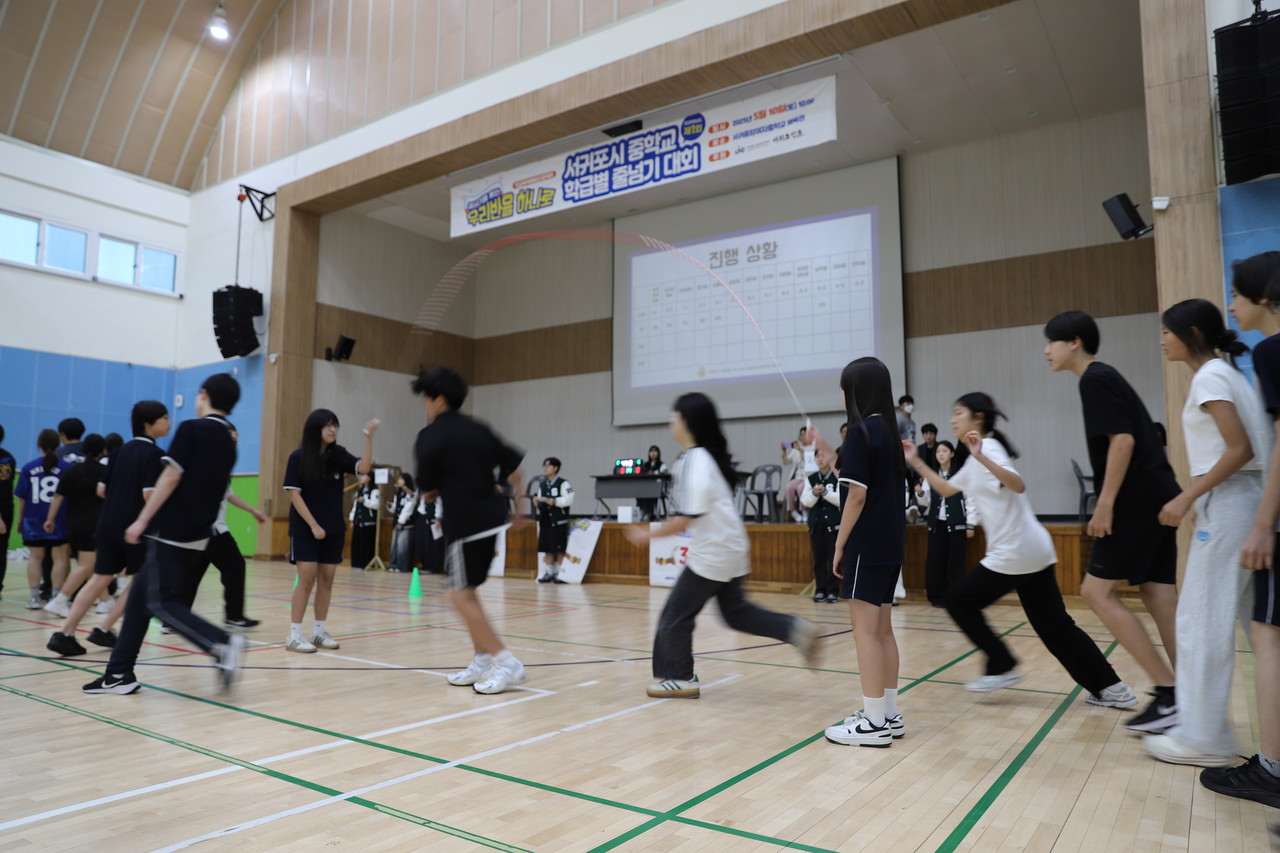 교내 연습과정과 학급 대항인 교내 대회를 거쳐 학교 대항 서귀포시 줄넘기 축제인 ‘서귀포신문사와 함께하는 중학교 학급별 줄넘기대회’에는 서귀포시 관내 13개 중학교에서 총 317명의 학생이 참여했다.