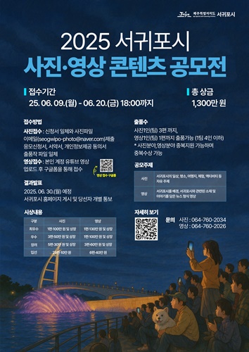 서귀포시가 지역의 다양한 매력을 발굴하고 이를 홍보 콘텐츠로 적극 활용하기 위해 '2025 서귀포시 사진·영상 콘텐츠 공모전'을 개최한다.