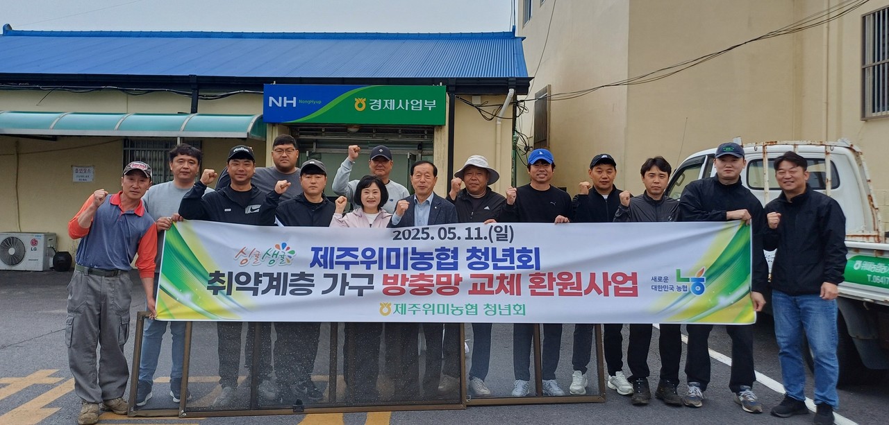 위미농협 청년회(회장 현우봉)는 지난 11일 위미리, 하례리, 신례리 지역 취약계층 50여명을 찾아 방충망 무료 교체 봉사활동을 실시했다.