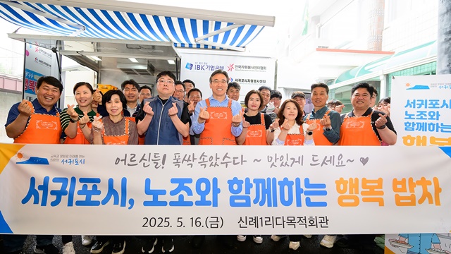 서귀포시가 5월 가정의 달을 맞아 남원읍 신례1리 마을을 방문해 어르신 120여 명을 대상으로 '찾아가는 해피투게더 행복밥차' 봉사활동을 펼쳤다고 밝혔다.