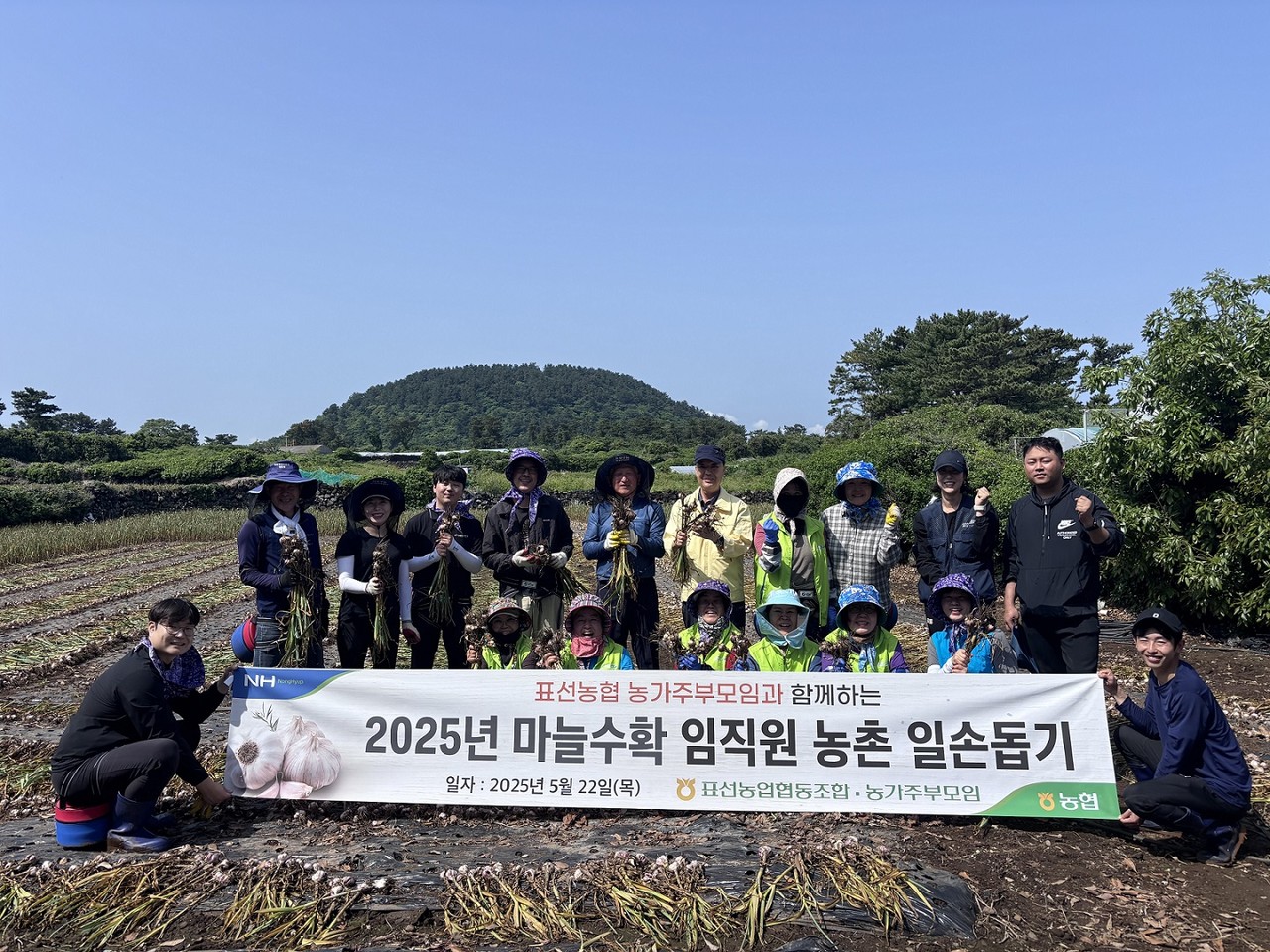표선농협(조합장 김용우)은 지난 22일 김녕리 소재 여성조합원 마늘 농가에서 농가주부모임(회장 이정신)과 함께 일손돕기를 진행했다.