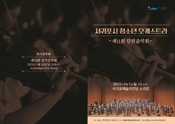 서귀포시청소년오케스트라가 오는 6월 1일 오후 서귀포예술의전당 소극장에서 '제11회 단원음악회'를 개최한다.