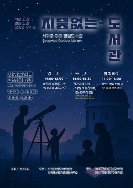 서귀포시 관계자는 "지붕 없는 도서관은 책과 우주를 매개로 아이들과 가족이 함께 어울리며 상상력을 키우고, 과학과 문화에 대한 흥미를 자연스럽게 느낄 수 있는 특별한 자리"라며 "앞으로도 다양한 기관과 협력해 시민들이 풍성한 문화 경험을 누릴 수 있도록 노력하겠다"고 말했다.