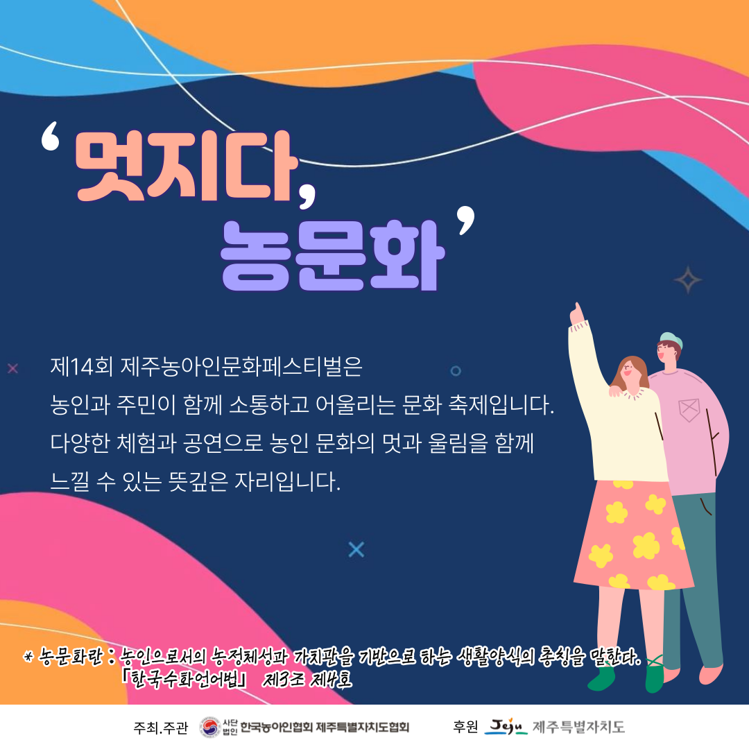 한국농아인협회 제주특별자치도협회(회장 김영진)가 주최하는 '제14회 제주농아인문화페스티벌'이 오는 14일 오전 10시 30분부터 오후 4시 30분까지 탐라문화광장에서 열린다.
