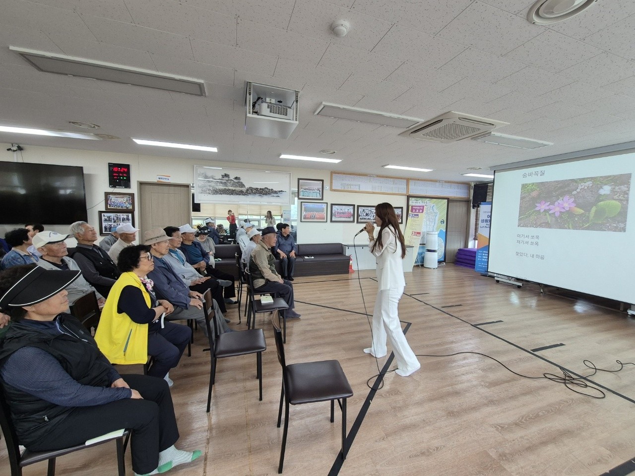 효돈중학교(교장 송미혜)는 10일 하효경로당과 효돈동주민자치센터에서 지역 주민들을 대상으로 디카시 창작 강연을 운영했다.