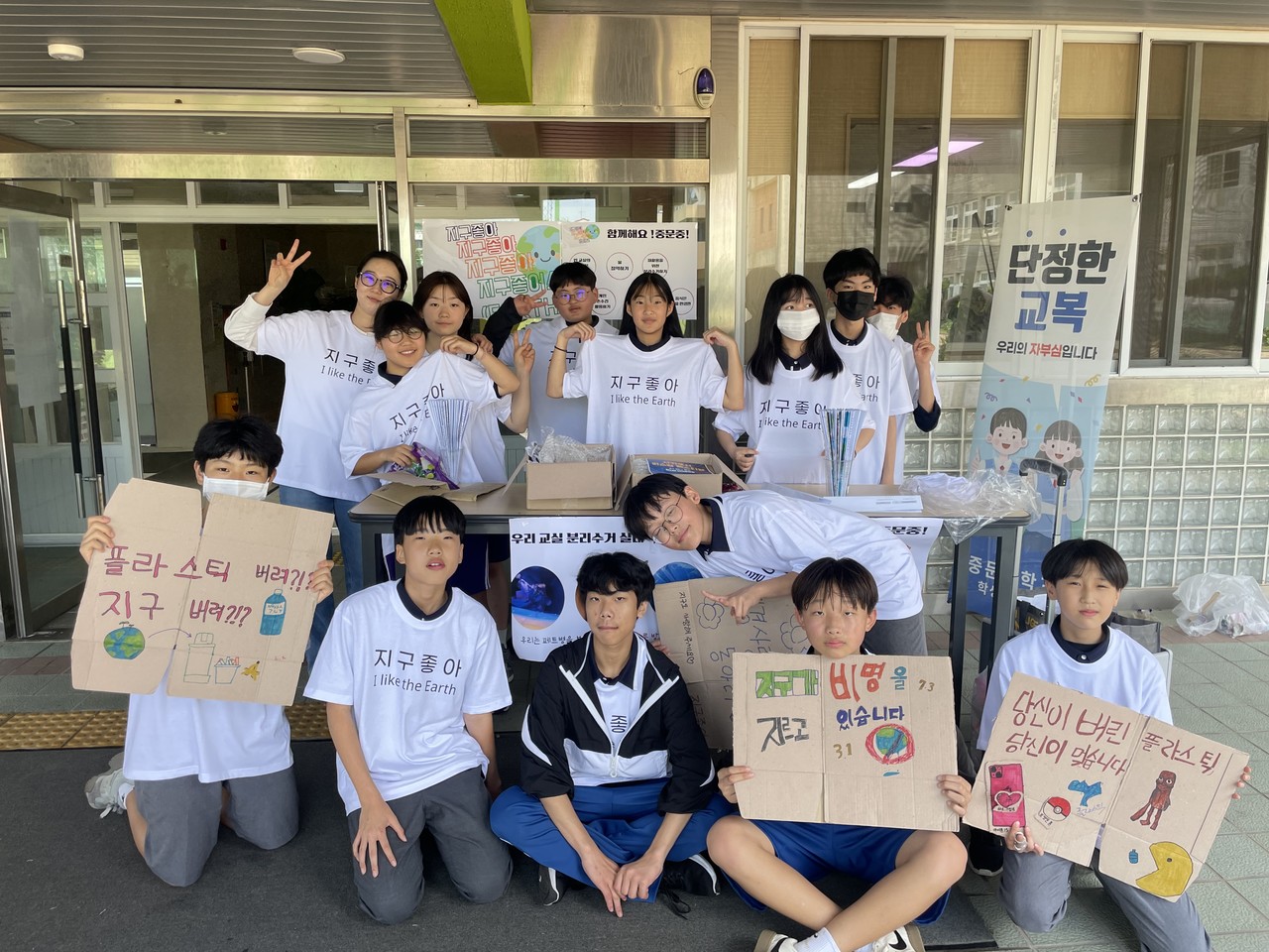 중문중학교(교장 고정상)는 지난 18일 학교에서 기후위기의 심각성을 인식하고, 환경지키기 실천 등을 위해‘지구좋아 캠페인’을 실시했다.