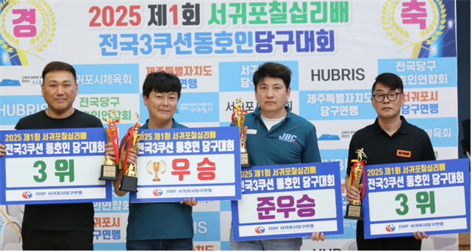 한편, 2025. 제1회 서귀포칠십리배 전국 3쿠션 동호인 당구대회 결과는 아래와 같다.