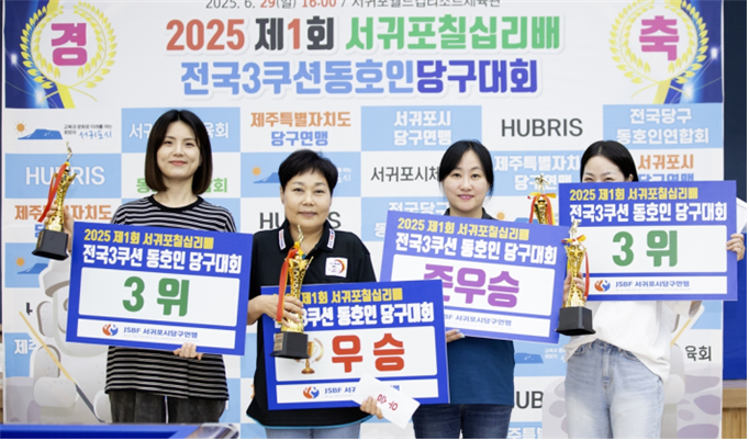 서귀포시당구연맹(회장 강치삼)은 지난 6월 27일부터 6월 29일까지 3일간 제주시와 서귀포시 일원 당구장 및 서귀포월드컵리조트체육관 등 총 16곳에서 '2025. 제1회 서귀포칠십리배 전국 3쿠션 동호인 당구대회'를 성황리에 개최했다.