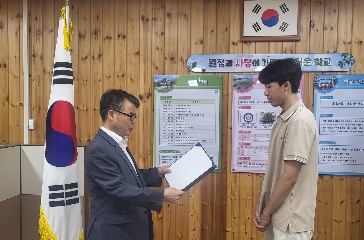 서귀포중학교(교장 고성무)는 최근 제주다문화교육센터 주관으로 열린 이중언어 말하기 대회에서 이신행 학생(3학년)이 은상을 받았다고 밝혔다.
