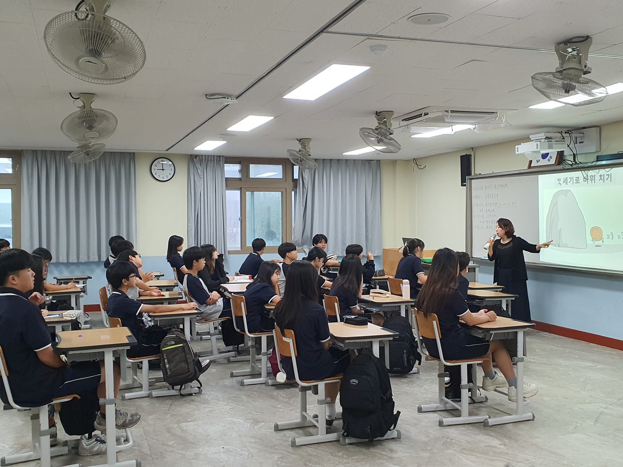 서귀포대신중학교(교장 신상후)는 지난 14일부터 17일까지 전교생을 대상으로 제주어이해교육을 실시했다. 교육은 제주어보전회의 교육 사업의 일환으로, 제주어 강사 자격 소지자가 참여해 진행했다.