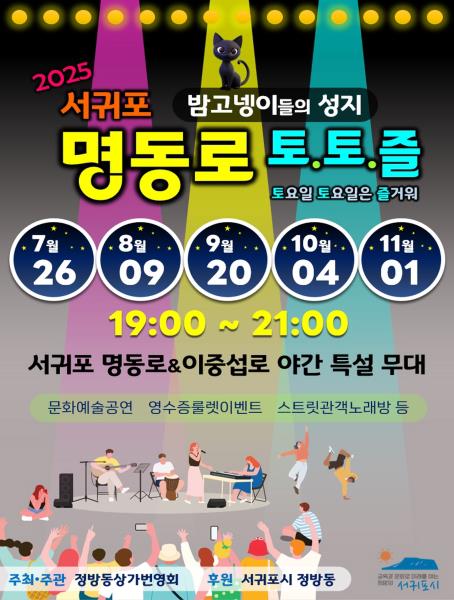 이중섭로와 명동로에서는 26일 저녁 7시 정방동 토요 문화행사 '토토즐'이, 27일 같은 시간 '서귀포 원도심 문화페스티벌'이 개최되어 지역 상인과 협력해 지역경제에 활력을 더할 것으로 보인다.