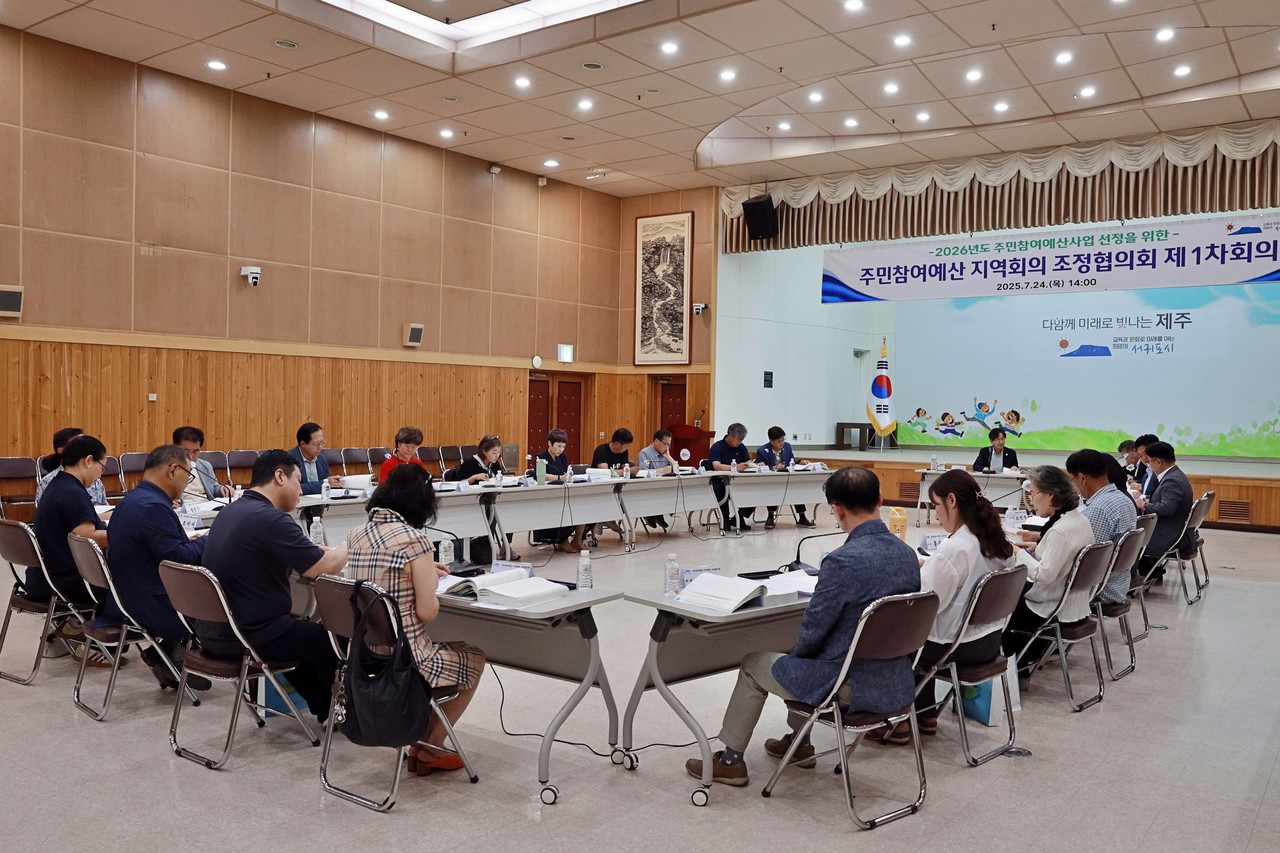 서귀포시는 지난 24일 주민참여예산 지역회의 조정협의회 위원 및 관계 공무원 등 50여 명이 참석한 가운데 2026년도 주민참여예산 사업 선정을 위한 지역회의 조정협의회 제1차 회의를 개최했다.