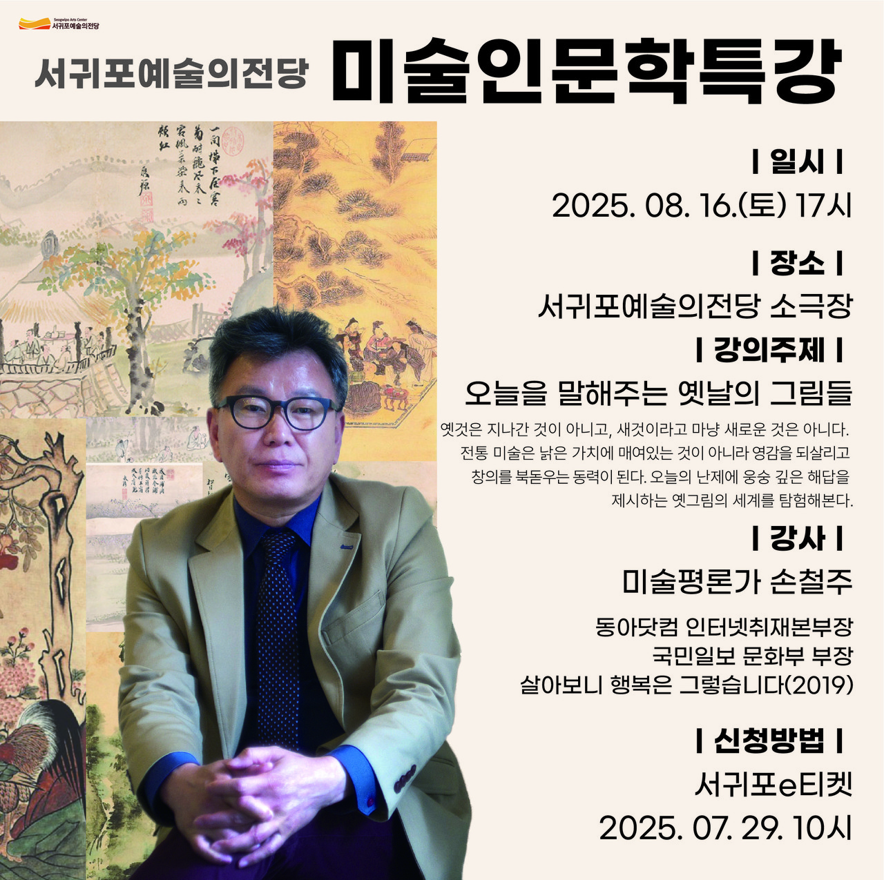 인문예술 첫 번째 강좌는 8월 16일 오후 5시에 열리는 손철주 미술평론가의 '오늘을 말해주는 옛날의 그림들' 강연으로, 옛 그림의 역사, 작가의 창작 스토리 등 색다른 인문예술 경험을 제공하며 옛 미술 작품의 감상 방법 및 이해도를 높일 예정이다.