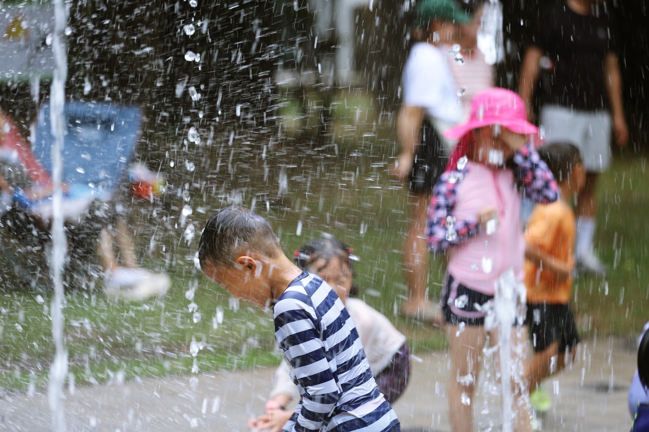 불볕더위가 기승을 부리고 있다. 지난 주말 서귀포시 서홍동 솜반천에 설치된 분수에서 아이들이 물줄기를 맞으며 무더위를 식히고 있다.