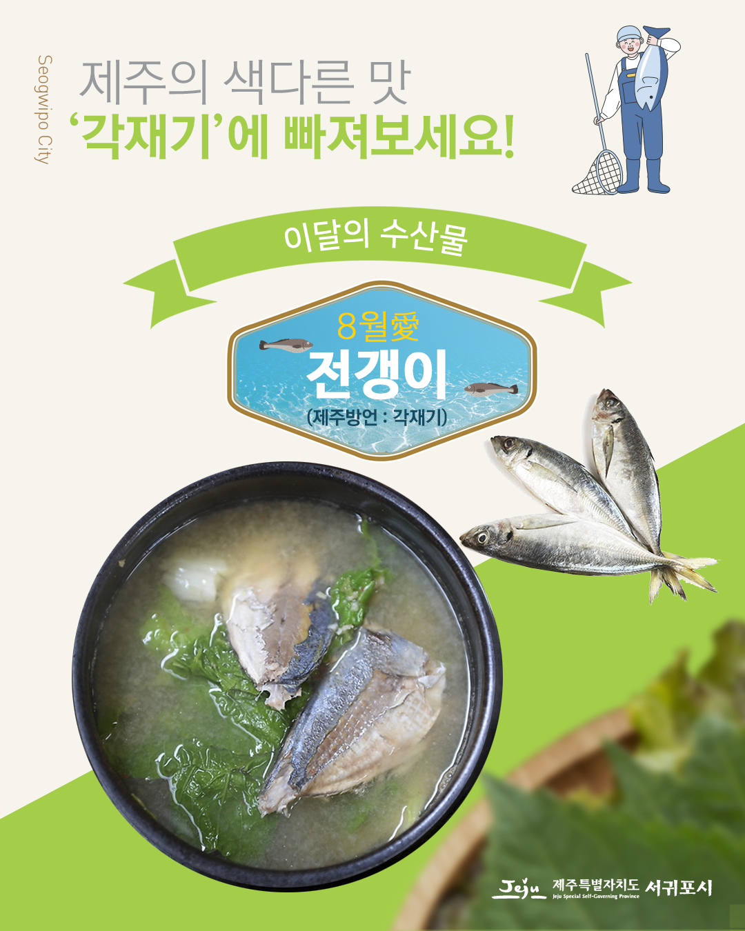 서귀포시는 8월을 맞아 이달의 수산물로 전갱이(제주 방언: 각재기)를 선정하고 본격적인 홍보를 개시했다.