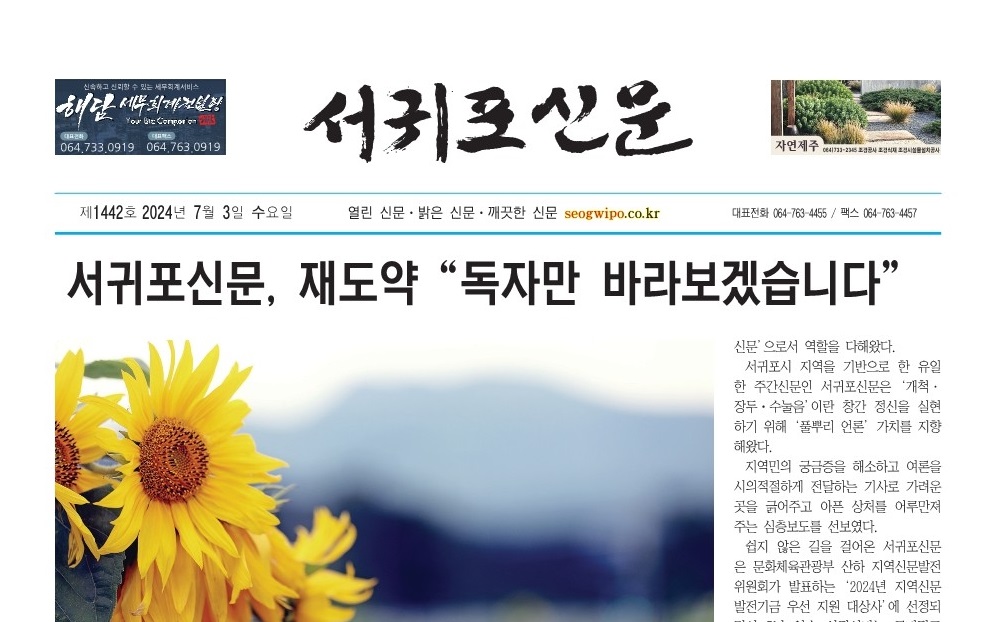 서귀포신문은 창간 30주년을 앞둔 올해부터 시민과 독자의 참여와 후원을 더 넓히기 위해 ‘서귀포신문 후원하기’ 시스템을 개설하고 후원자를 모집하고 있다.