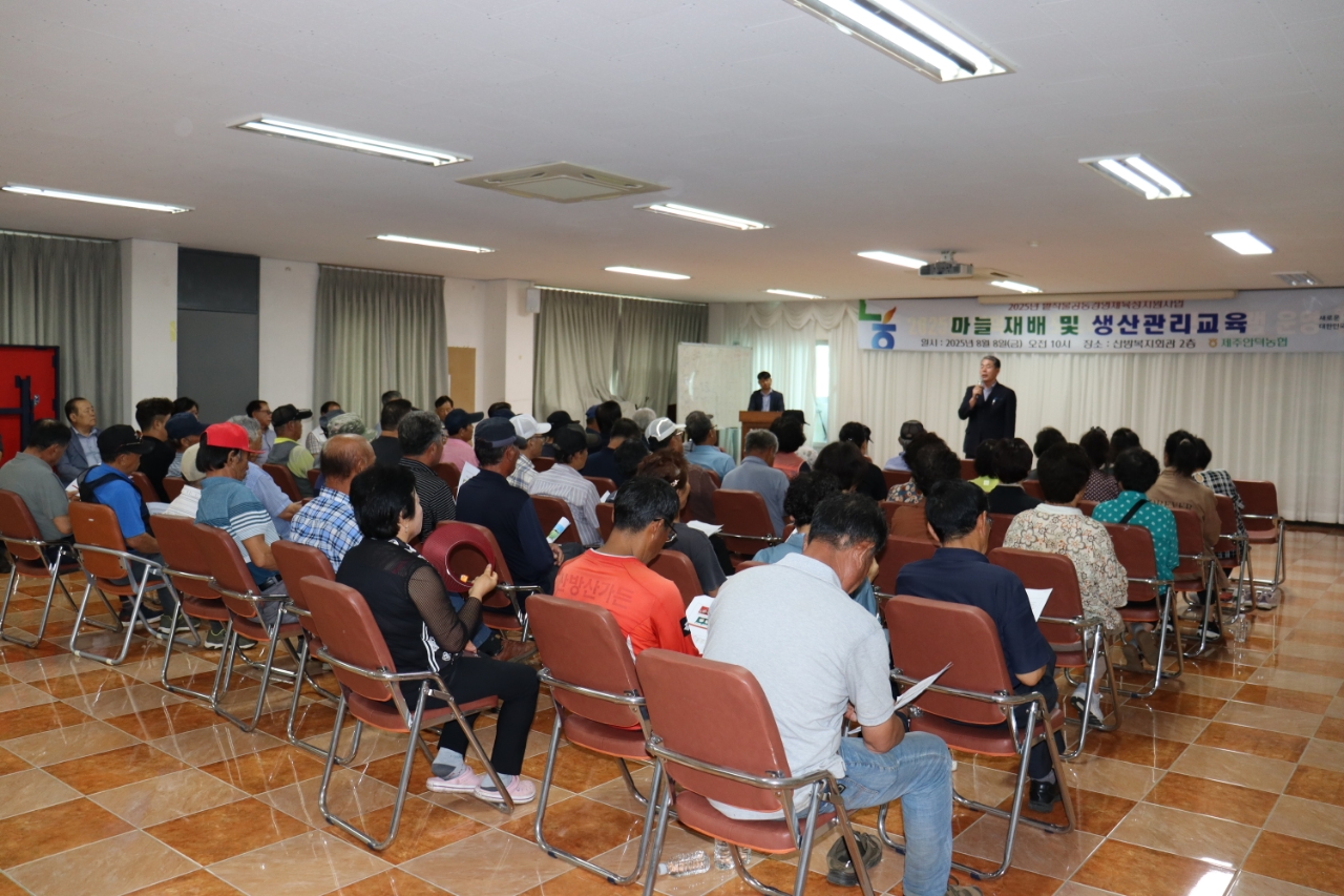 이번 교육은 2025년도 밭작물공동경영체육성지원사업의 일환으로 마늘 파종시기에 앞서 마늘품목의 다양한 정보와 전문적 재배 및 생산관리 기술 안내로 마늘 품질향상과 안정적인 생산기반을 마련하는데 역점을 뒀다.