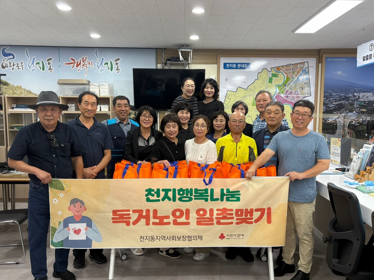 서귀포시 천지동지역사회보장협의체(공동 위원장 류상안·강은아)는 지난 12일 정기회의를 개최하고, 독거노인 일촌맺기 대상 20가구를 방문해 어르신 안부 확인과 식료품을 전달했다.