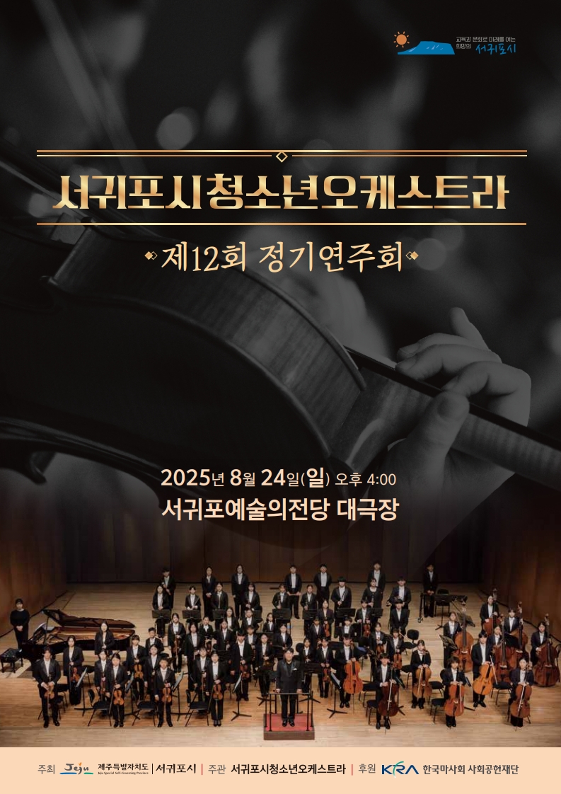 서귀포시가 오는 24일 오후 4시 서귀포예술의전당 대극장에서 서귀포시청소년오케스트라의 '제12회 정기연주회'를 개최한다.