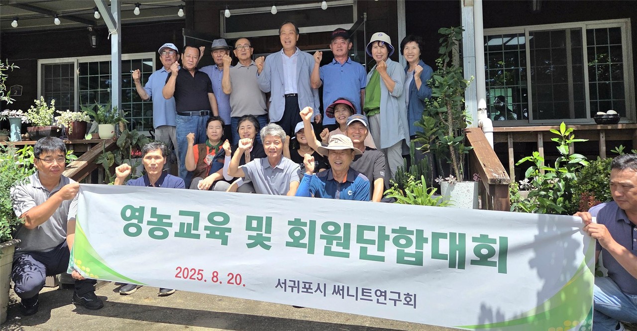 서귀포시써니트연구회(회장 고문삼)는 지난 20일 서귀포시내 토평원에서 고품질 써니트 생산을 위한 영농교육과 함께 회원 단합대회를 개최했다.