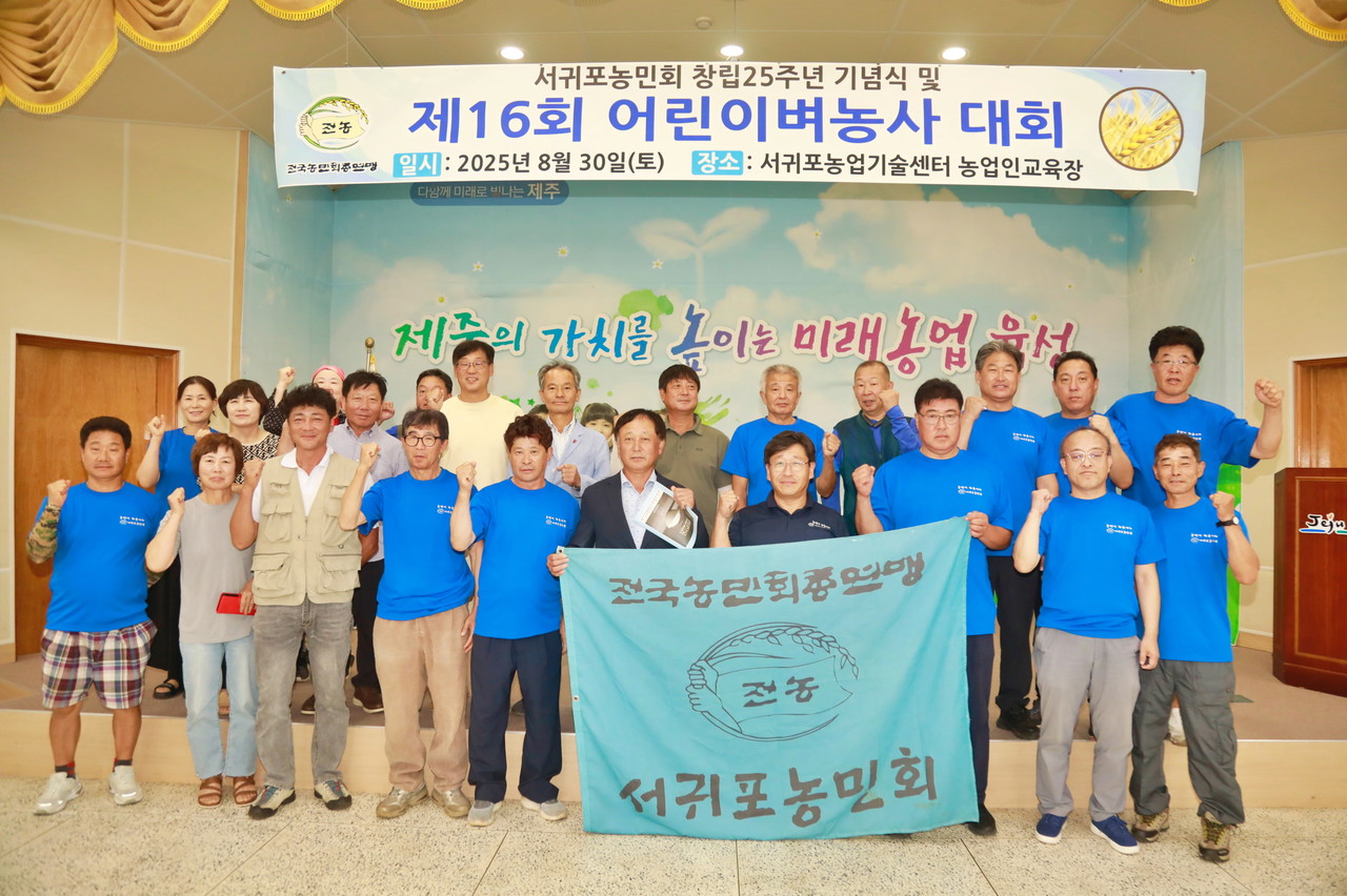 전농 제주도연맹 서귀포농민회(회장 김대호)가 지난 8월 30일 서귀포농업기술센터에서 서귀포농민회 창립 25주년 기념식 및 ‘제16회 서귀포농민회 어린이벼농사대회’를 개최했다.