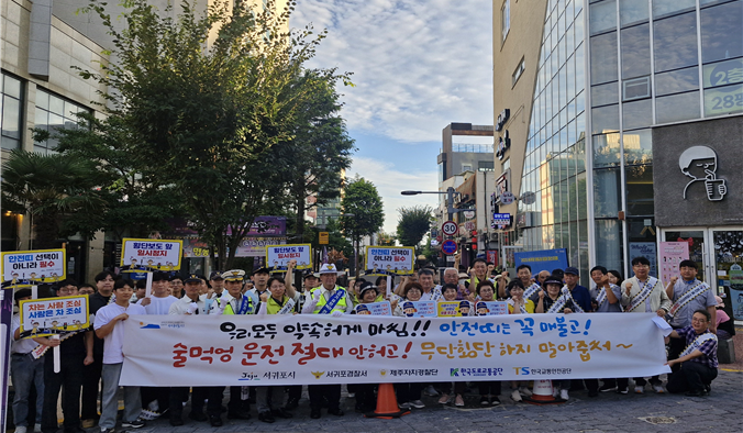 이날 캠페인에는 서귀포시를 비롯해 도로교통공단, 서귀포경찰서, 자치경찰단(서귀포지역경찰대), 정방동 자생단체 등 관계자 50여 명이 참여했으며 △음주운전 예방 △횡단보도 준수 △전 좌석 안전띠 착용 △6대 절대 주정차 금지구역 안내 등 4대 분야를 중심으로 집중 홍보가 이루어졌다.