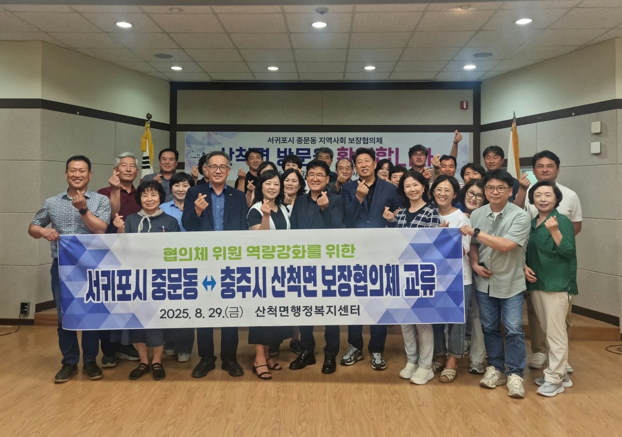 서귀포시 중문동지역사회보장협의회(공동위원장 임정순, 고창보)는 지난 8월 29일 충청남도 충주시 산척면지역사회보장협의체와의 교류를 통해 지역복지 서비스의 질적 향상과 위원의 역량 강화를 도모했다.