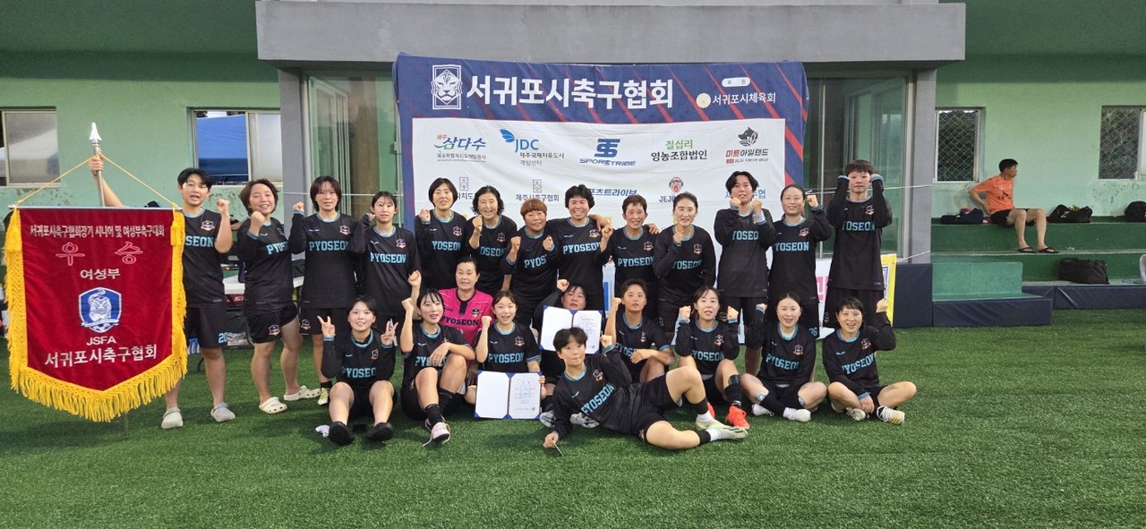 서귀포시 표선면여성축구회(회장 김해정)은 지난 31일 개최된 제10회 서귀포시축구협회장기 시니어 및 여성부 축구대회에 참가해 여성부 부문에서 우승을 차지했다.