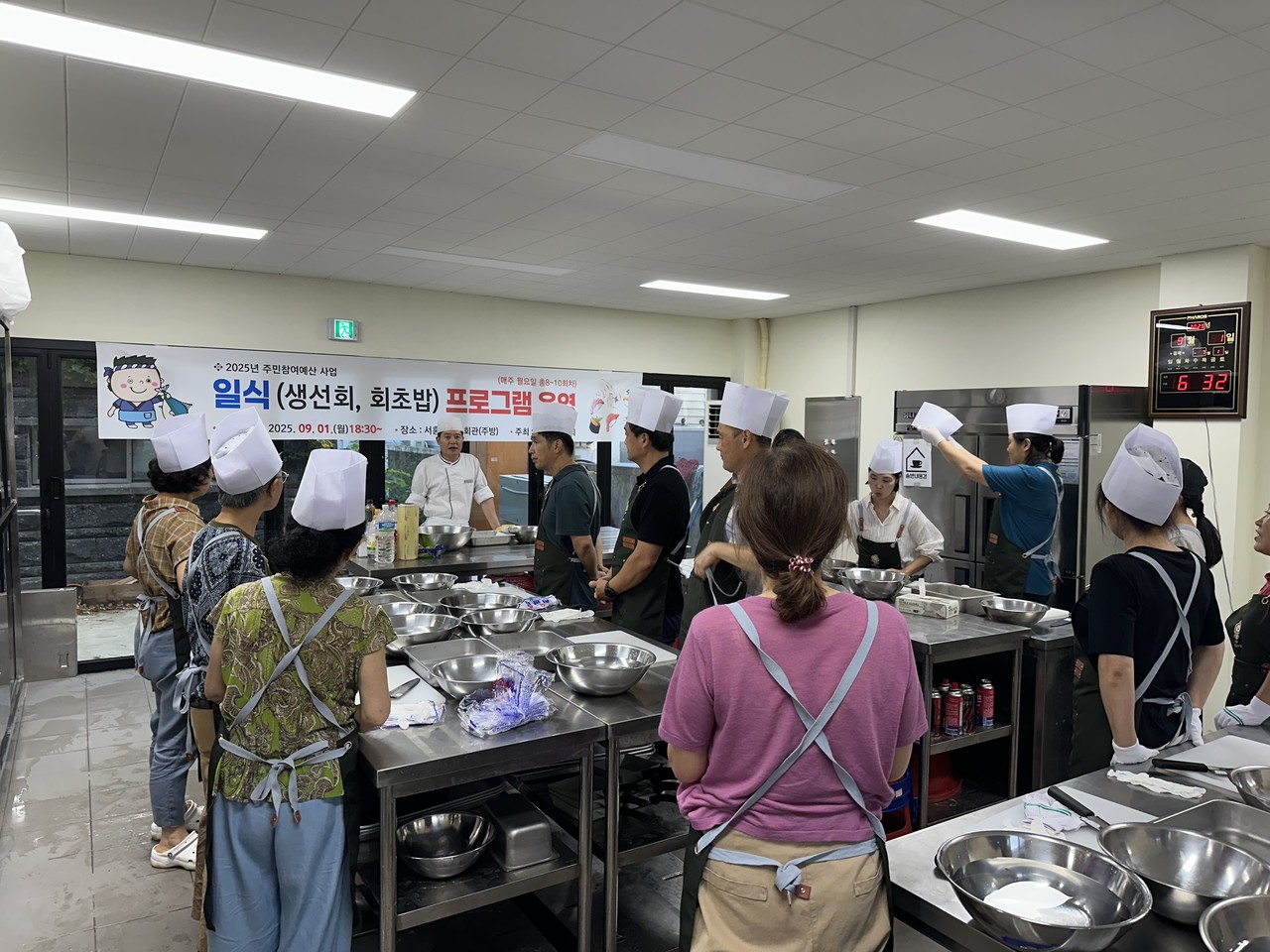 ‘일식(생선회·회초밥) 조리 교육’은 서홍동 마을회에서 지역주민들의 자기계발 기회를 확대하고, 실생활에 유용한 기술 습득을 통해 주민역량을 강화하기 위한 목적으로 기획한 마을 평생학습관 프로그램 중 하나로, 지난 6월부터 8월까지 진행한 1차 일식 조리 프로그램에 이어 2차로 진행된다.