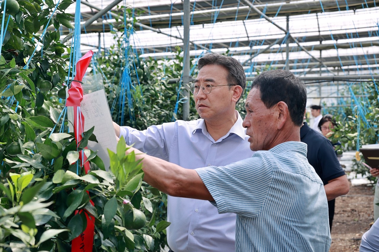 오순문 서귀포시장은 지난 4일 레드향 열과피해 현장을 방문해 피해 상황을 점검하고, 농가 및 관계자들을 격려했다.