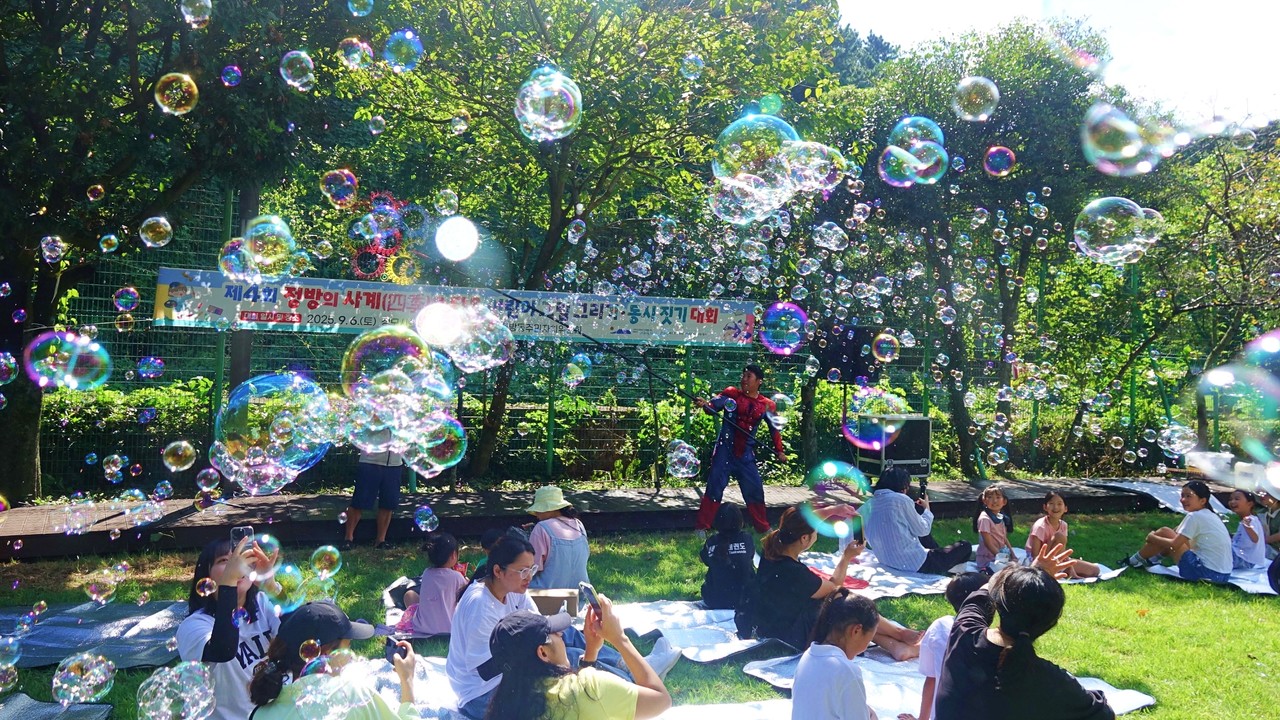 이번 대회는 도내 어린이 100여 명이 참석한 가운데, 어린이의 시각으로 바라본 ‘정방동의 사계’를 주제로 그림·동시 창작 활동이 펼쳐졌으며 더불어 어린이 가야금·바이올린 공연 및 버블쇼, 솜사탕 만들기 등 어린이를 위한 다양한 부대행사가 진행되어 참여자의 호응을 얻었다.