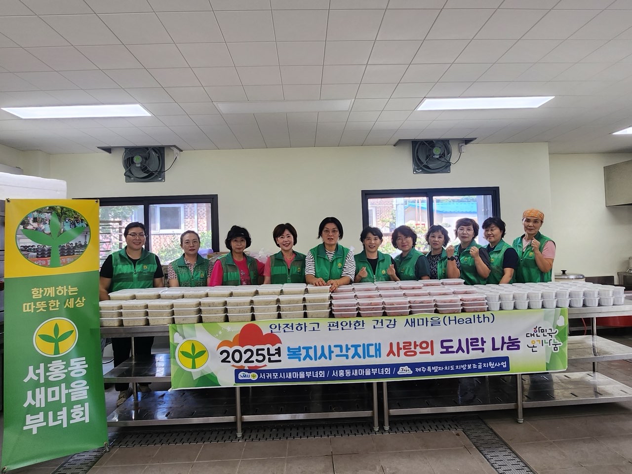 서귀포시 서홍동새마을부녀회(회장 장은진)는 지난 6일 회원 20명이 참여한 가운데 홀로 사는 어르신 등 지역 내 취약계층 100가구를 대상으로 도시락을 전달하고 각 가정을 방문해 안부를 확인했다.