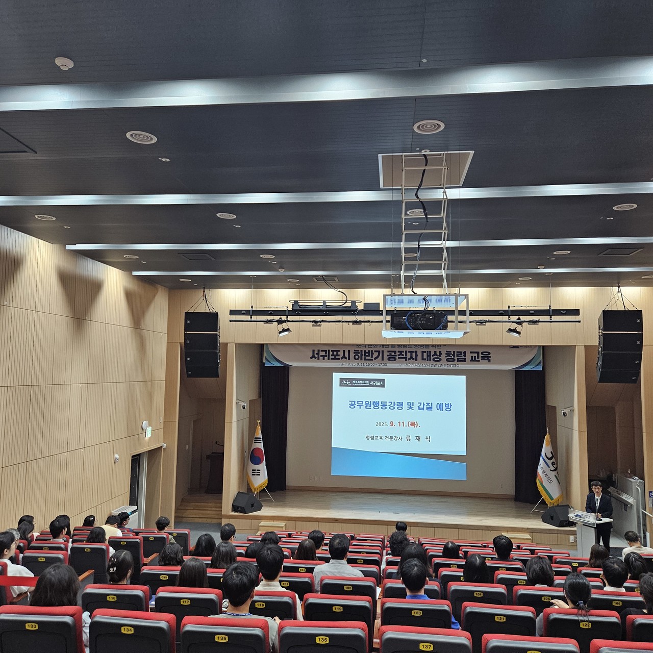서귀포시(시장 오순문)는 11일 시청 문화강좌실에서 서귀포시 공직자 150여명을 대상으로 직장 내 괴롭힘, 갑질행위 발생을 예방하고 공무원 행동강령 등 반부패 법령에 대한 이해도를 높이기 위한 청렴 교육을 실시했다.