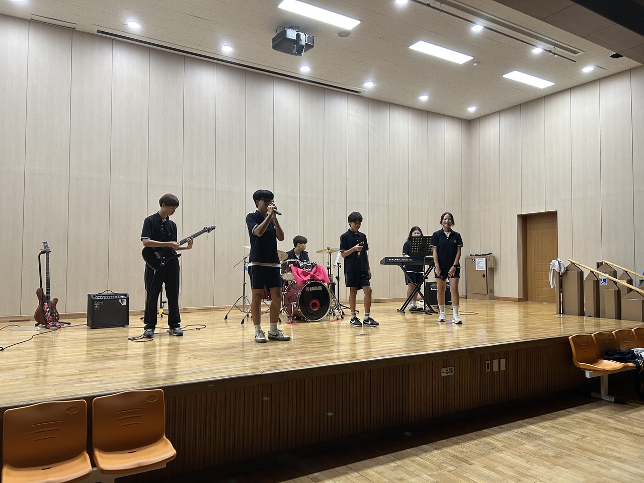 남원중 그룹사운드 밴드는 기타, 드럼, 키보드, 보컬 등으로 구성됐다. 학생이 직접 연습과 무대 준비 등을 주도하고 있다.