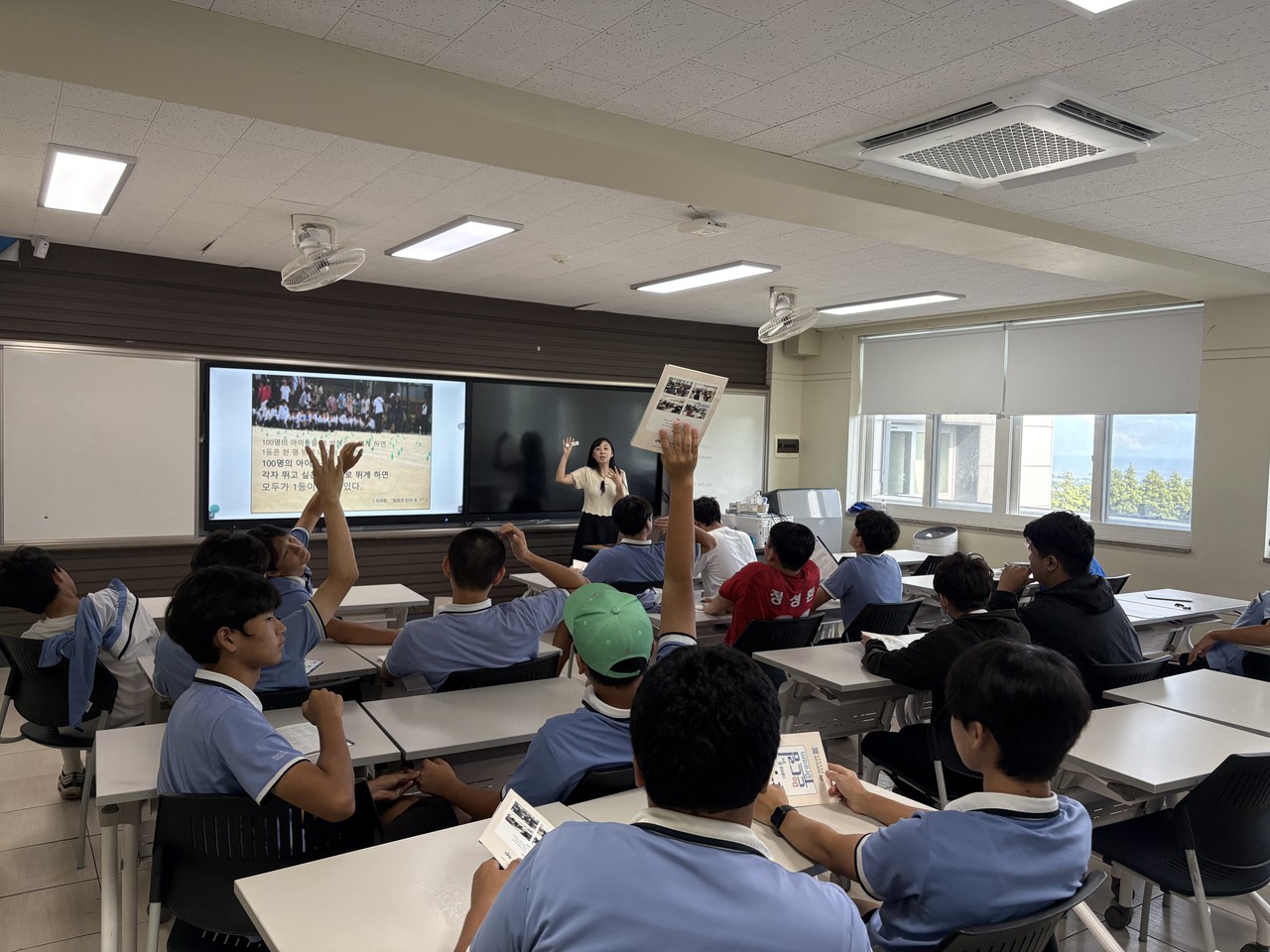 남주중학교(교장 강영철)는 지난 8일 학교에서 김정아 제주도교육청 취엄담당관을 초청해 학생을 대상으로 ‘2025 학교로 찾아가는 직업계고 설명회’를 진행했다.