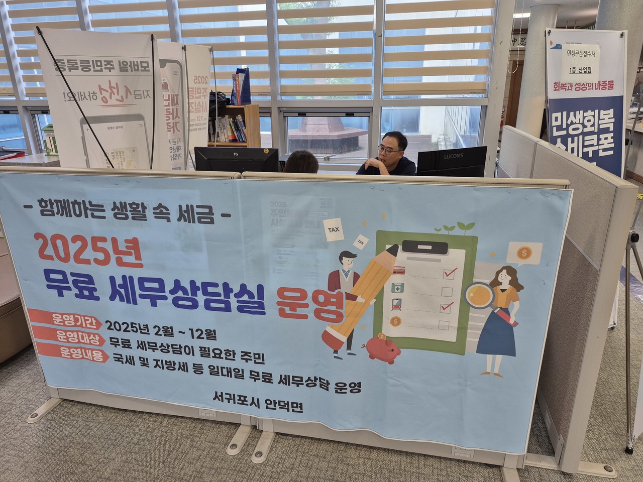 서귀포시 안덕면(면장 김태유)에서는 지난 16일 안덕면 청사 1층 민원실 내에서 세무상담이 필요한 주민들을 대상으로‘무료 세무상담실’을 운영했다.