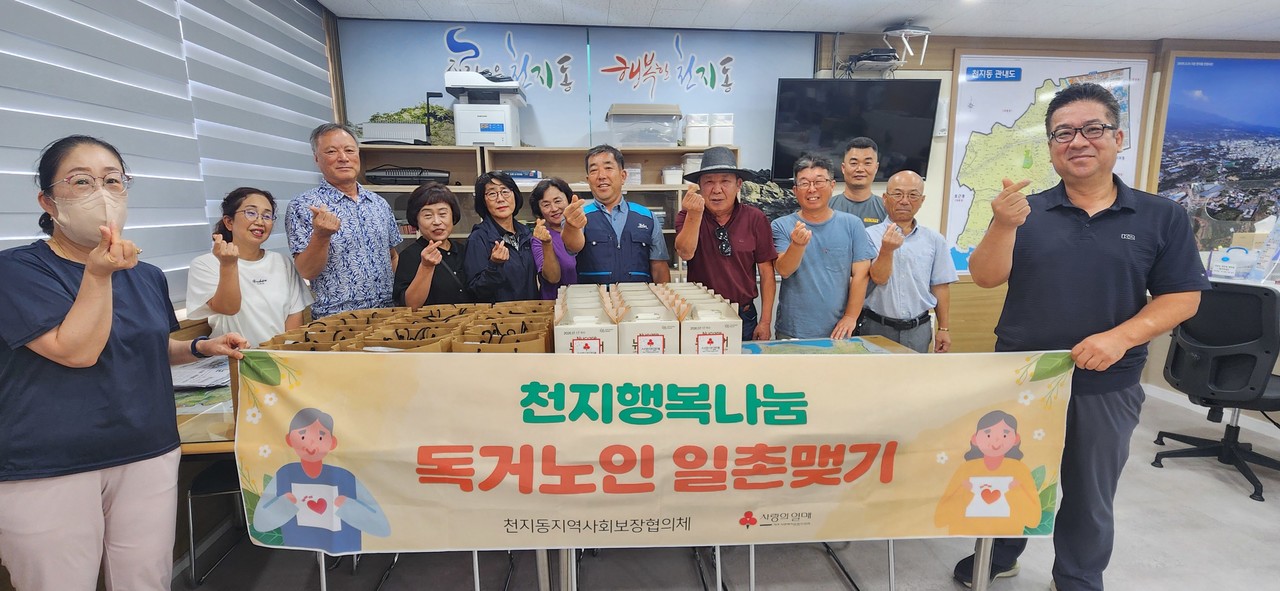 ‘천지행복나눔 독거노인 일촌맺기’ 사업은 천지동 지역사회보장협의체 위원과 홀로 사는 어르신 20명을 1대1로 매칭해 월 1회이상 어르신 안부를 확인하고 고독사 발생 예방을 위해 추진하고 있다.