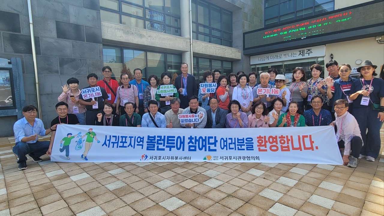 (사)서귀포시관광협의회와 서귀포시자원봉사센터는 전국의 자원봉사자를 대상으로 제주도에서 시행하고 있는 '볼런투어' 단체지원금 제도를 홍보하고 있다.