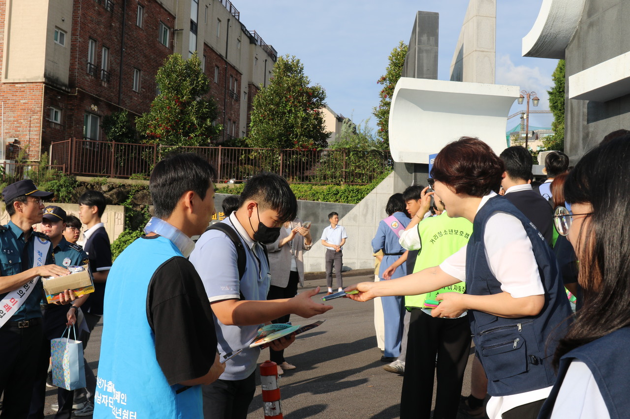 참가자들은 25년 2학기를 맞이해 등교하는 학생들에게 학교폭력 117신고 시스템에 대해 홍보하고 불법촬영, 청소년 불법도박 및 마약범죄의 위험성 등에 대한 위험성을 알리며 전단지, 파일철, 볼펜 등의 홍보물품도 배부했다.
