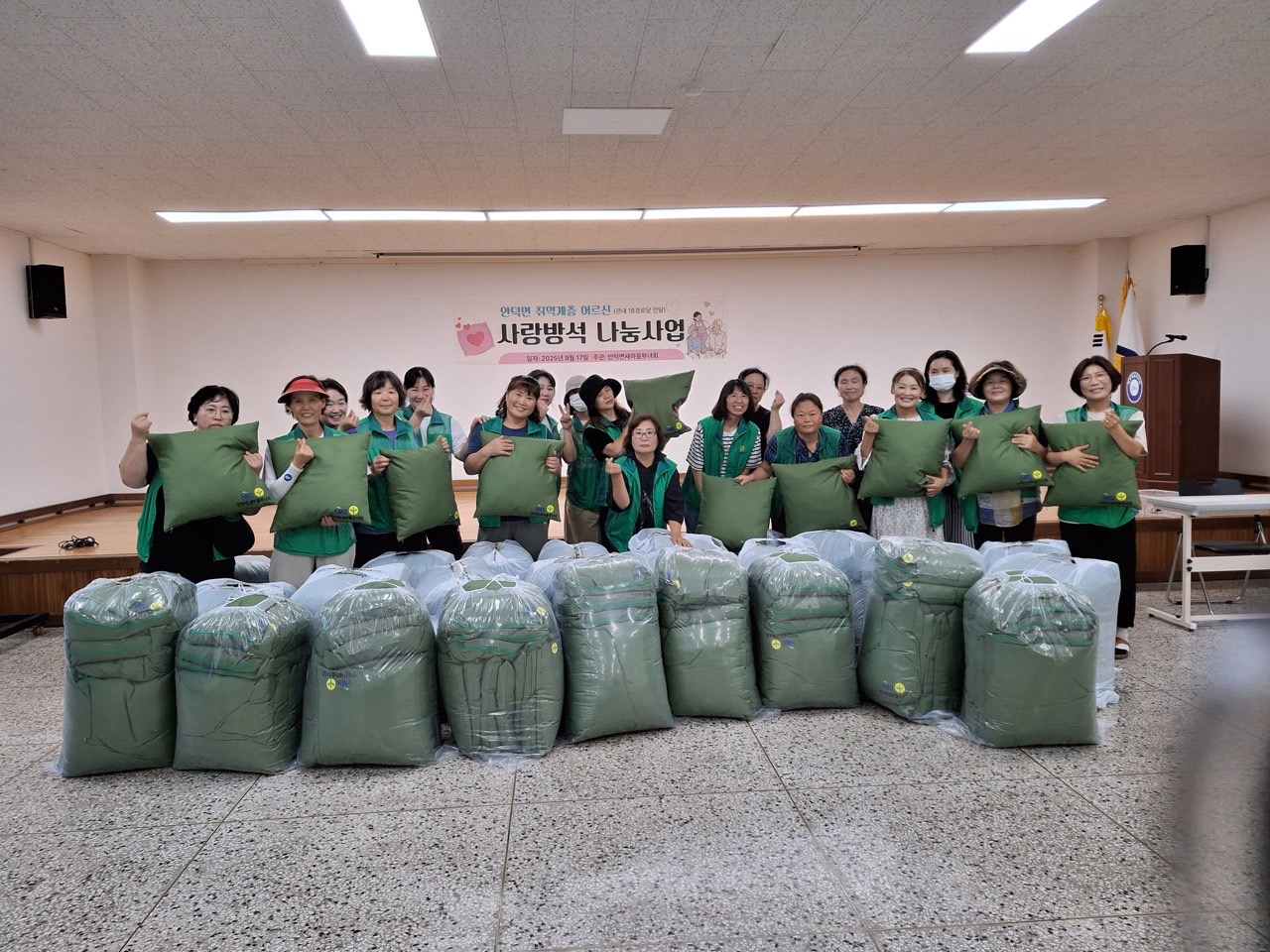 이번 행사는 지역 어르신의 생활 편의를 위해 마련됐으며, 회원들이 직접 제작한 방석을 경로당과 어르신에게 전달해 따뜻한 온정을 전했다.