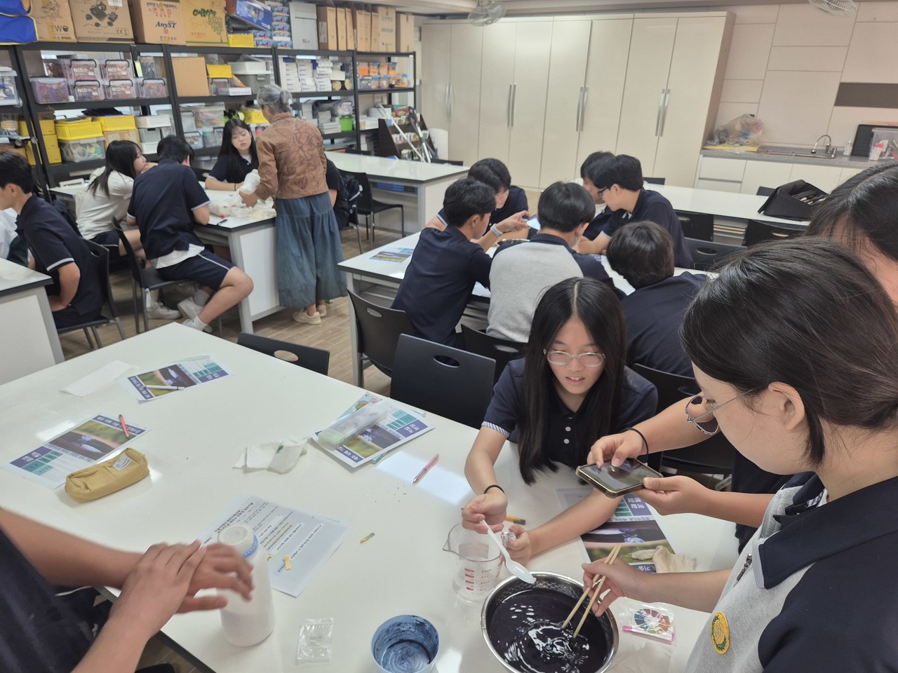 이번 융합수업은 제주 전통 염색 문화를 배우면서 정보통신기술(ICT)과 생명기술을 활용해 문제를 해결하는 융합 수업 방식으로 이뤄졌다.