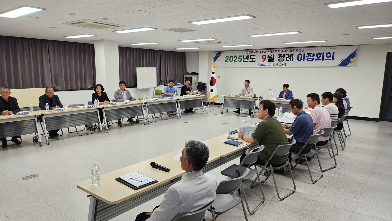 서귀포시 표선면이장협의회(협의회장 김민석)은 지난 19일 면사무소 다목적실에서 이장단과 팀장 등 20여 명이 참여한 가운데 9월 이장회의를 개최하고 각 마을별 행사 공유, 지역 현안 사항, 하반기 주요사업 추진 계획 등에 대해 논의했다.