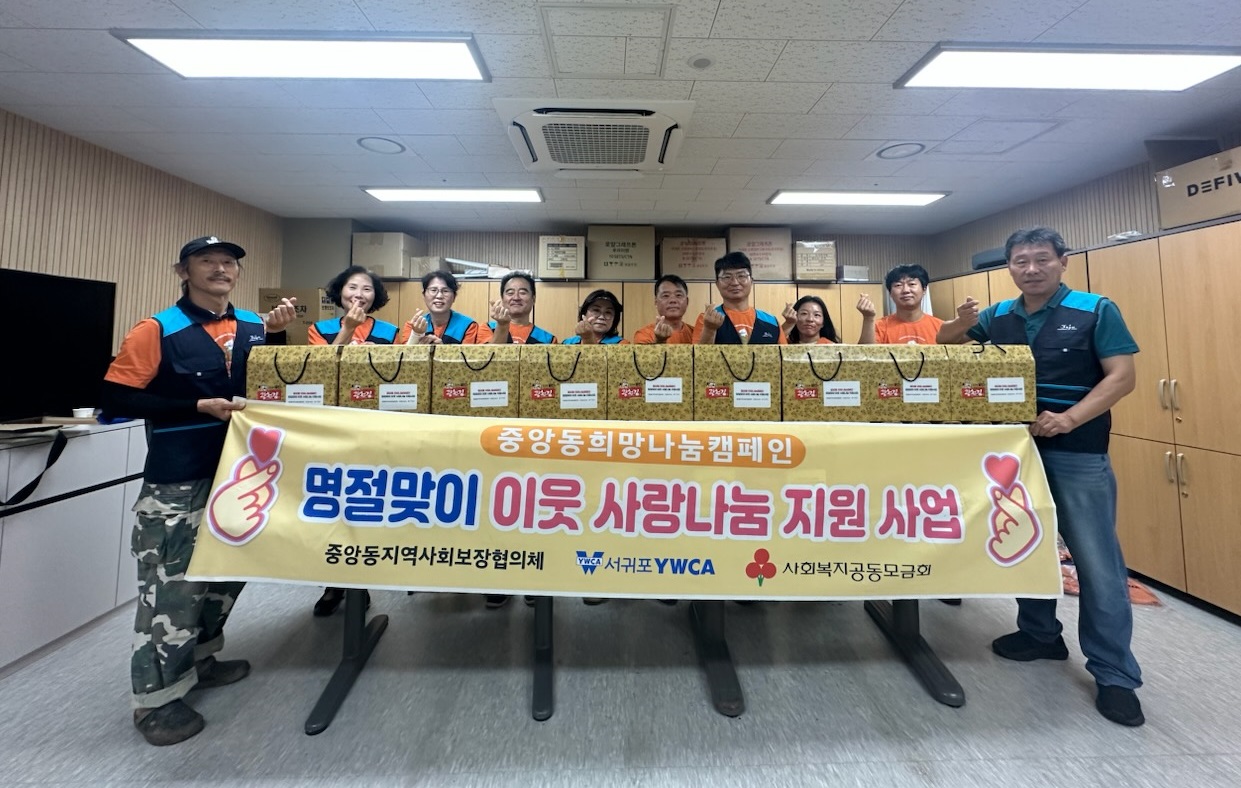 서귀포시 중앙동지역사회보장협의체(공동위원장 서은미, 박성우)는 지난 22일 중앙동희망나눔캠페인 ‘명절맞이 이웃 사랑나눔’사업 추진을 위해 250만원 상당의 추석 물품을 지역 내 취약계층에게 전달했다.