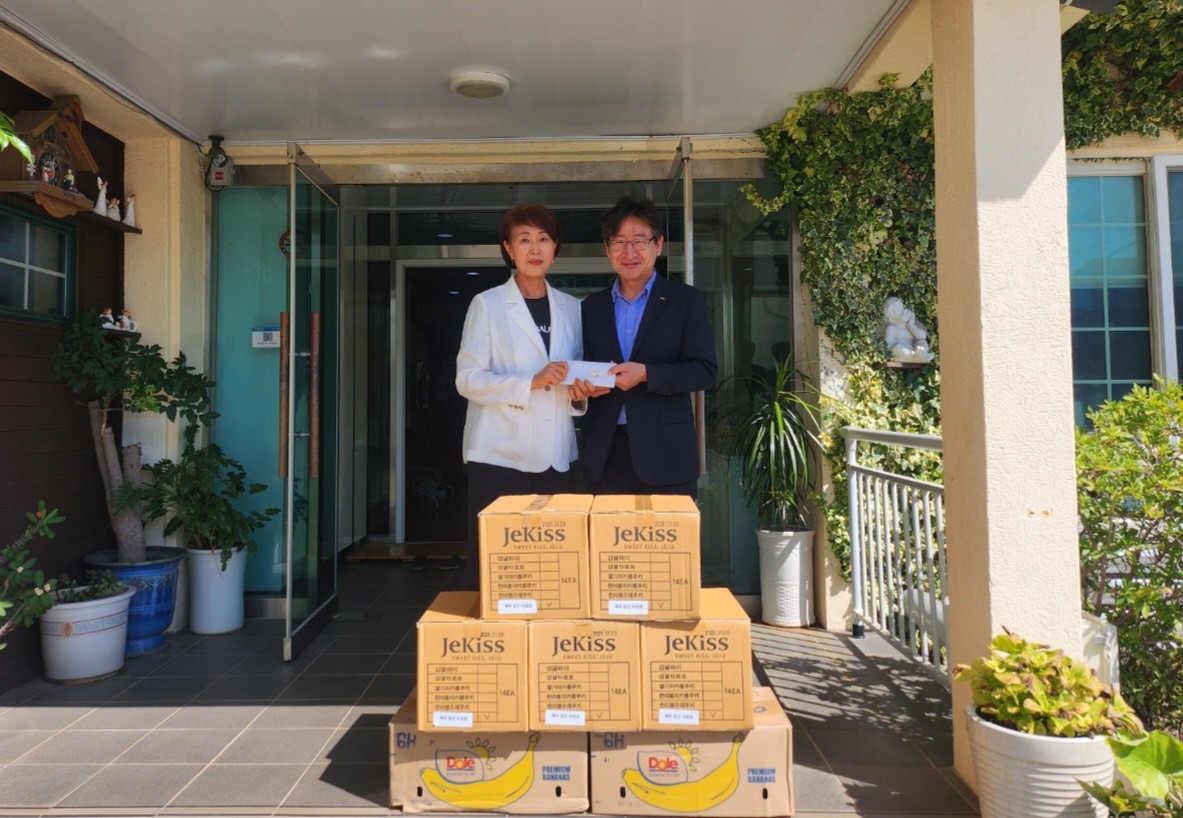 서귀포시 재향군인회(회장 현종우)는 지난 23일 추석 명절을 맞아 지역사회에 온정을 나누고자 아동복지시설 ‘천사의집’에 제주특산품인 감귤과자를 기부했다.