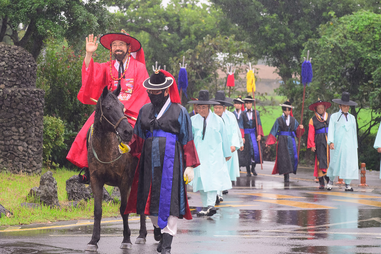 오순문 서귀포시장은 지난 27일 성읍민속마을 남문광장에서 열린 제31회 성읍민속마을 전통민속 재현축제에 참석해 현감 행차 재현 및 축사를 했다.