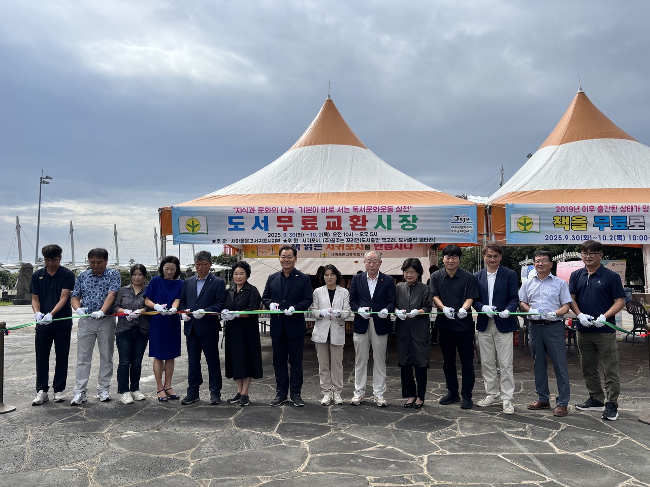 새마을문고중앙회서귀포시지부(회장 송춘화)는 30일 제주월드컵경기장 광장에서 도서무료교환시장 개장식을 개최했다.